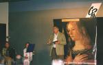 Primer capítulo de la novela Los ángeles más hermosos, representada por dos actrices de Teatro Pausa, Yasmina y Begoña, como María Antonia y Eladia, acompañadas al acordeón por Marta Flores, en 18 de junio de 2003, en el Club de Prensa de La Nueva España, en Oviedo. Bajo la dirección de Javier Villanueva.